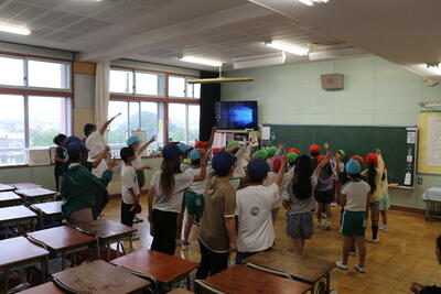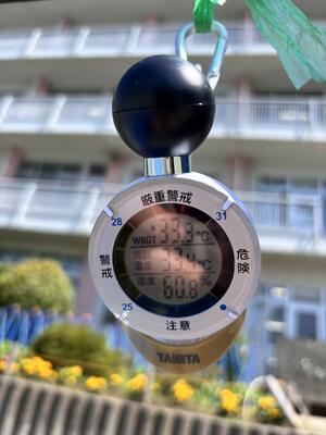今日は校庭のWBGT計が31を超えましたので、校庭での体育、外遊びは中止としました。(水泳、体育館での体育はこまめな休憩・水分補給を行いながら実施)