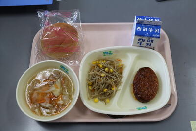 ※写真は検食用の給食です。学年によりパンの大きさやおかずの量が異なります。