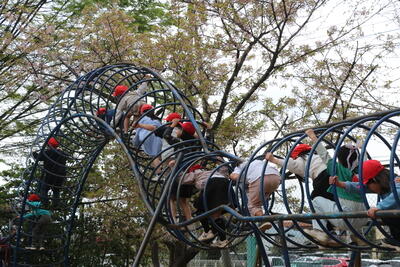 新年度になると新3年生が「恐竜の骨」(遊具の名前)に殺到します。