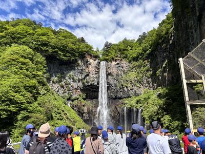 青空に緑が映える景色の中、華厳の滝を見て、戦場ヶ原ハイキングを行うことができました。