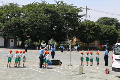 交通指導員さんにご指導いただき、交通安全教室を行いました。
