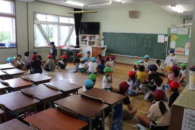 今日は室内で、6年生のリードのもと、自己紹介をし、残った時間で、その場でできる遊びをしていました。