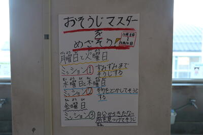 令和7年12月8日(月) 清掃強化週間 投稿: 管理者 (12/08) カテゴリー: 今日の出来事 今週は清掃強化週間です。 美化委員会がポスターを作ったり、放送をしたりして呼びかけています。 今日はのミッションは「すみずみまでそうじする」だそうです。 各階の廊下にポスターが貼ってあるのでわかりやすいです。 (もちろん、ほかの委員会も様々な取り組みを行っています。) Tweet -