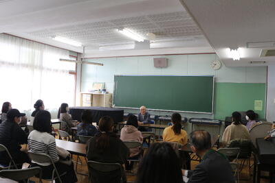 令和8年1月19日(月) PTA家庭教育学級閉校式 投稿: 管理者 (14:09) カテゴリー: 今日の出来事 PTA家庭教育学級の講座が開かれ、あわせて閉校式が行われました。 (正式は21日の給食試食会が最終となります。) 今回は ・本校でも大変お世話になっている杉本孝一郎さんによる講話(戦争体験、宮前地区の昔) ・ひょうたんアートづくり でした。 ここまでご尽力いただいた役員さん、ありがとうございました。 Tweet -