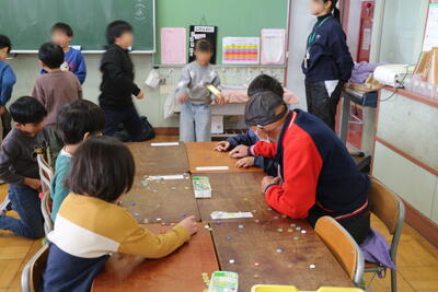 令和8年1月21日(水) 生活科(昔遊び) 1年 投稿: 管理者 (13:06) カテゴリー: 今日の出来事 長生会の皆様にご協力いただき、昔遊びを行いました。 ・竹とんぼ ・けん玉 ・めんこ ・だるま落とし ・こま回し ・おはじき ・折り紙 ・あやとり ・お手玉 の9種類です。 手を挙げてもらったところ、「はじめて経験した遊びがある」と答えた児童が大半でした。 先日のたこあげとあわせて10種類の昔遊びを体験することができました。 Tweet -