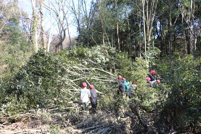 令和8年1月27日(火) 総合的な学習の時間 4,5年 投稿: 管理者 (17:42) オオタカの森での学習も今回で最終です。 木を切り倒すお手伝いをさせていただき、倒した木の枝をのこぎりで切りました。 木が倒れた瞬間の音や振動は多くの子が初めての経験でみんな驚いていました。 Tweet -