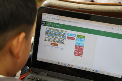 令和8年3月23日(月) 算数(タブレットの利用) 1年 投稿: 管理者 (12:03) カテゴリー: 授業の様子 算数でプログラミングの学習を行っていました。 指示を作って自機を目的地まで動かすというのは以前紹介した他の学年と変わりませんが、他の学年よりも簡単に命令を出せるようになっています。 (指示が「上に進む」と「右に進む」しかありません。) プログラミングに限らず、こうやって1年生から少しずつ積み上げていきます。 Tweet -